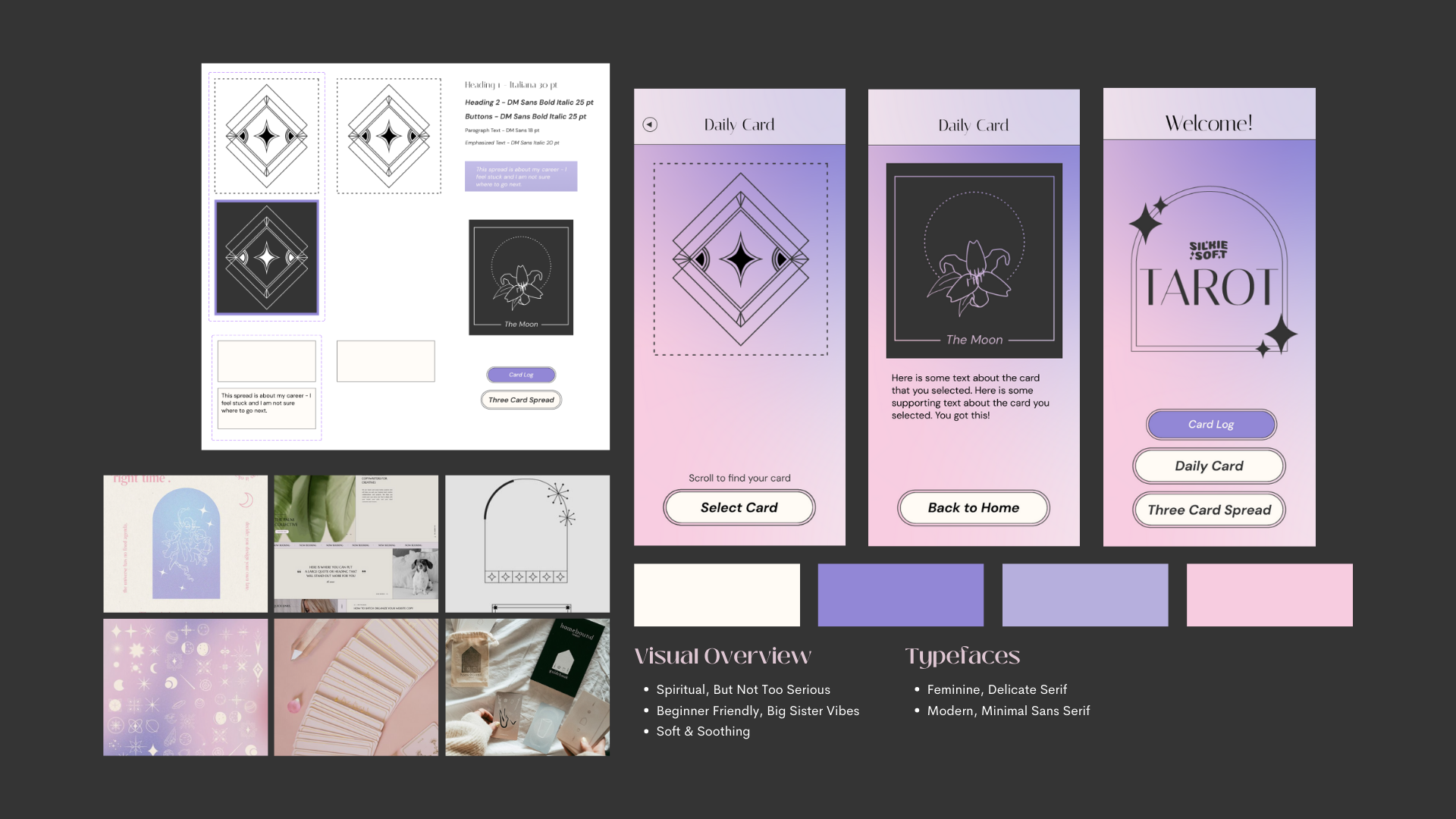 I wanted to make something unique - most tarot apps are dark and celestial. While there’s nothing wrong with that, I decided to aim for something a bit more light and friendly to align with my goal of reaching beginners and casual, secular tarot enthusiasts.